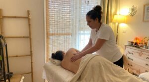 לקראת סיום שוכבת המטופלת על הגב למספר דקות עם כרית תמיכה מתחת לרגליים,לעיסוי צוואר, קרקפת ופנים.