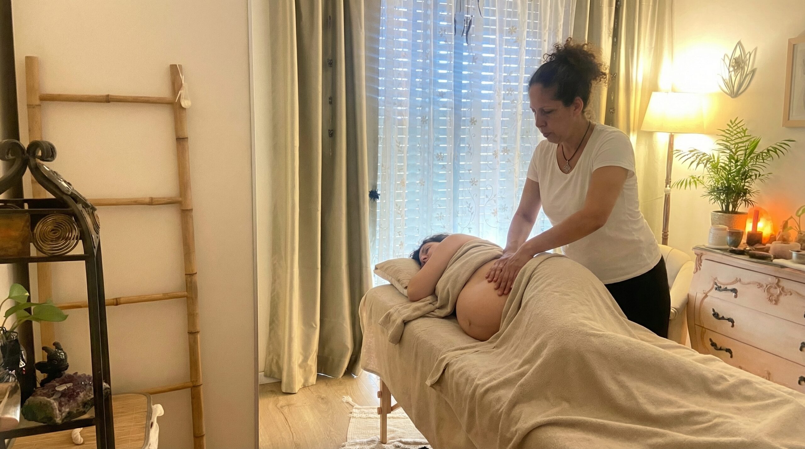 עיסוי נשים הרות הנו עיסוי עדין,כאשר הוא מתבצע כשהאישה שוכבת על הצד ונתמכת בכרית מתחת לברכיים על מנת לשמור על גב ישר ולהוריד ממנו עומס .